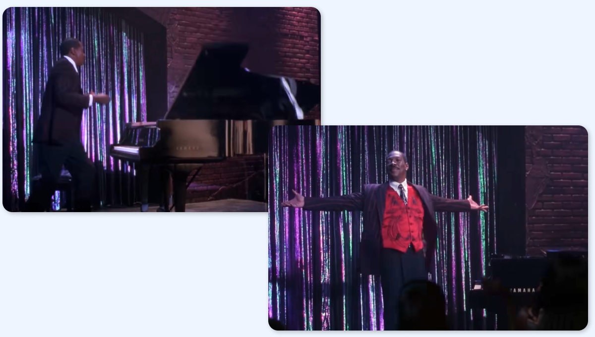 Перевоплотившись в Бадди Лава, Шерман спорит с комиком и бросает его в пианино во время выступления. Во время броска хорошо видно, что Эдди Мёрфи в этот момент заменяет дублер. Через несколько секунд в кадре вновь появляется Мёрфи.
