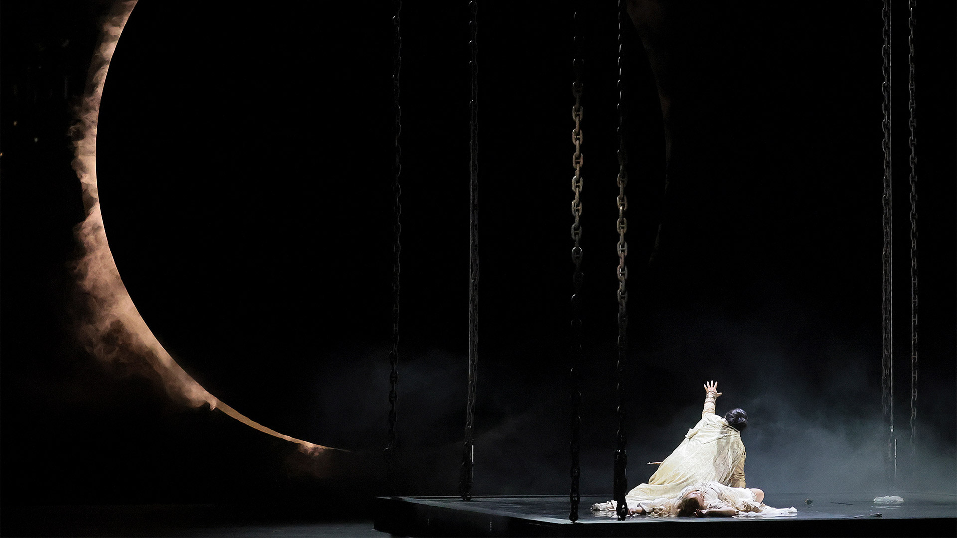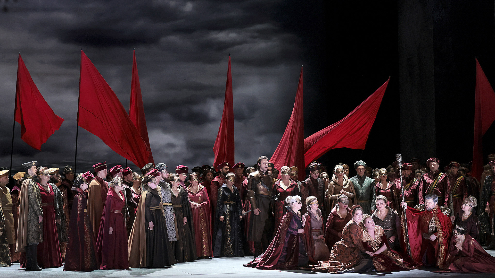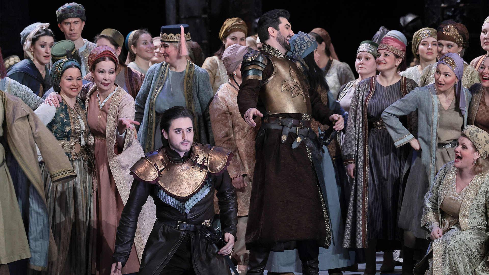 Действие в постановке развивается динамично, без пауз и ненужных отступлений. Благодаря этому трехчасовая опера захватывает зрителя с первых сцен и заставляет сопереживать героям. Этому способствует и интерактивная составляющая: украшения минималистичны, но функциональны. Они создают атмосферу средневекового города, не отвлекая внимания от актеров, и неоднократно перемещаются на протяжении всего действия, превращая пространство то во дворец или замок, то в пристань или парк. Они подсвечиваются разными цветами, задавая сценкам нужное настроение.