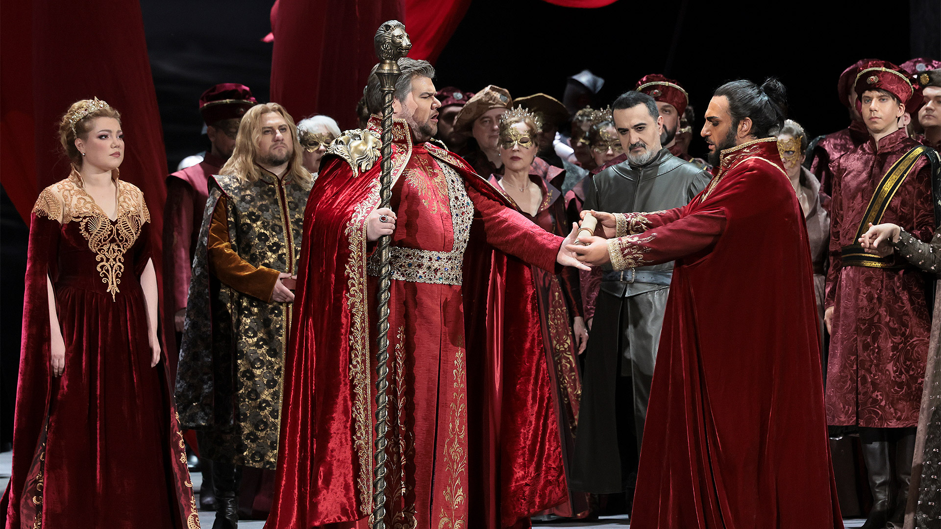 Впервые за 40 лет знаменитая опера Джузеппе Верди «Отелло» снова в репертуаре Большого театра. Над новой постановкой, посвященной 250-летию юбилейного сезона, работали режиссер Джанкарло Дель Монако и музыкальный руководитель и дирижер Валерий Гергиев. На Исторической сцене, в которую зритель погружается с первого действия, царят венецианские страсти. рассказывает, чем получилась опера и кому она будет интересна.