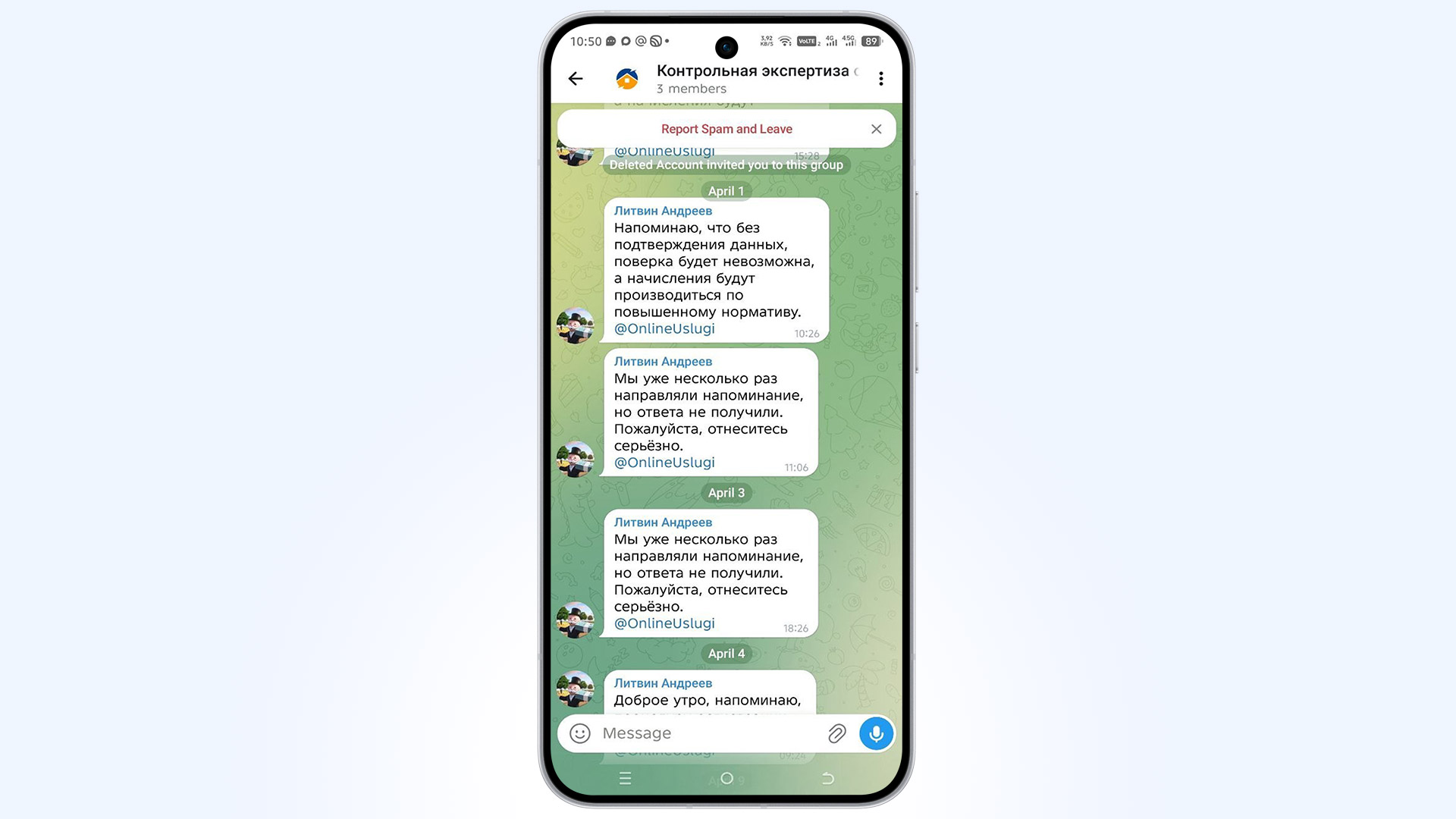 Злоумышленники создают группу с названием, вызывающим доверие, например, «Отдел обслуживания», «Инспекция счетчиков» или с названием ресурсоснабжающей организации. Человек автоматически добавляется в группу, где уже есть фейковые аккаунты, что создает видимость активности и легитимности.