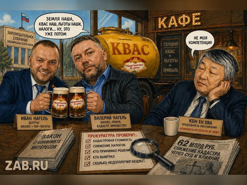 И здесь Забайкалью следует внимательно смотреть не на Краснодар, а на себя. Потому что у нас тоже есть истории, где земля, собственность, преференции, парламентский статус и бизнес-интересы сходятся в одной точке. Одна из таких точек — «Читинские ключи квас» и семья Нагель.
