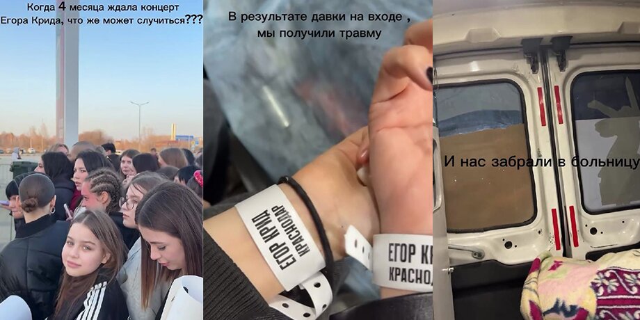 О неприятном инциденте, произошедшем 22 марта во время выступления певца Егора Крида (настоящее имя Егор Булаткин) в Краснодаре, сообщили СМИ. Из-за большого скопления людей у ​​входа образовалась давка; в результате юную поклонницу, пришедшую на концерт вместе с матерью, прижали к металлическому забору. Ребенок почувствовал себя плохо, стал жаловаться на тошноту и боли в животе. Мать обратилась к врачам - они вызвали скорую, и девочку отвезли в больницу, где у нее диагностировали ушиб мягких тканей. После проверки фанатка и ее мама вернулись на концерт, но добрались лишь до последнего трека.